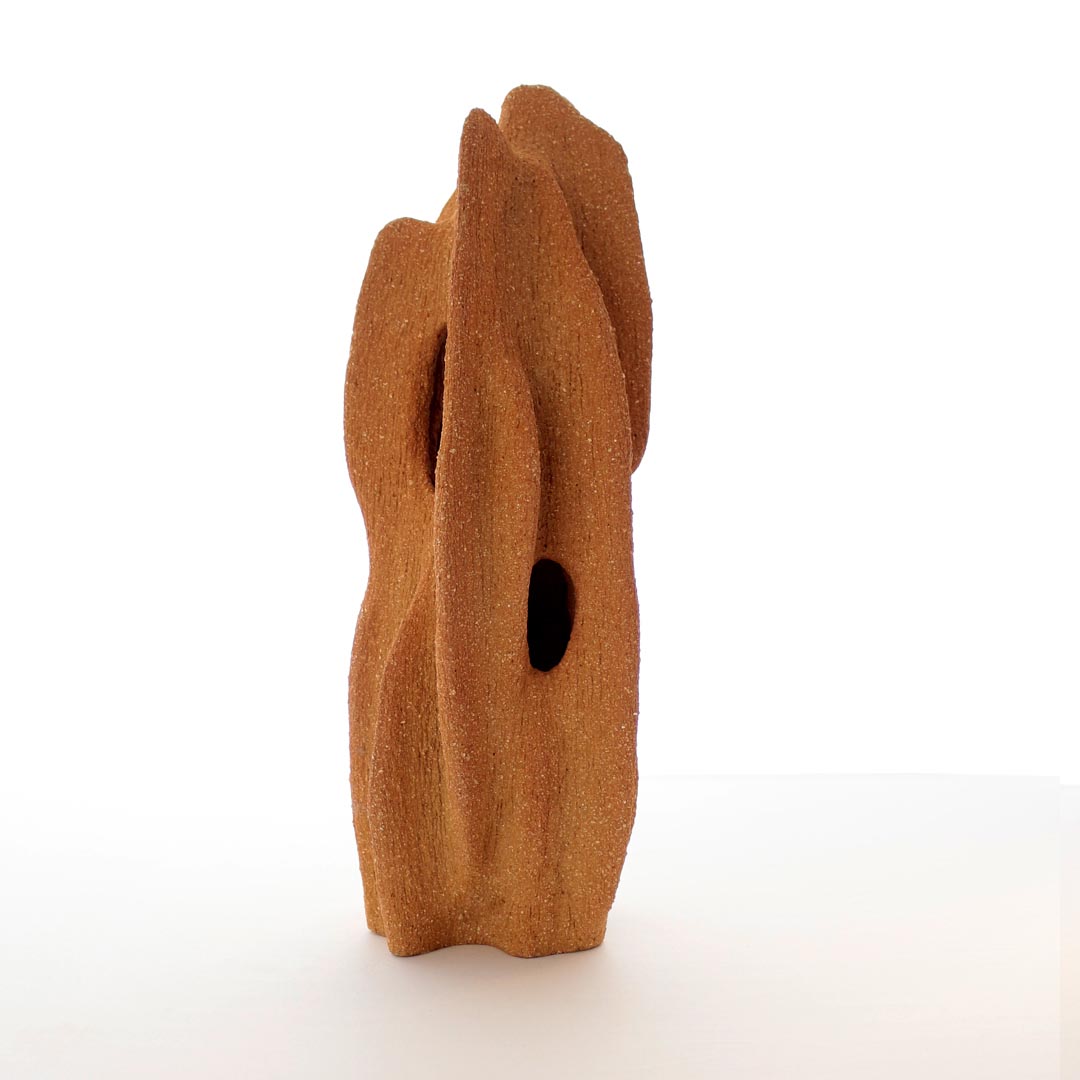 Las medidas de 45x15x15 cm la convierten en una escultura de presencia notable, ideal para ser el centro de atención y su forma vertical y fluida, con sus cavidades orgánicas, sugiere movimiento.