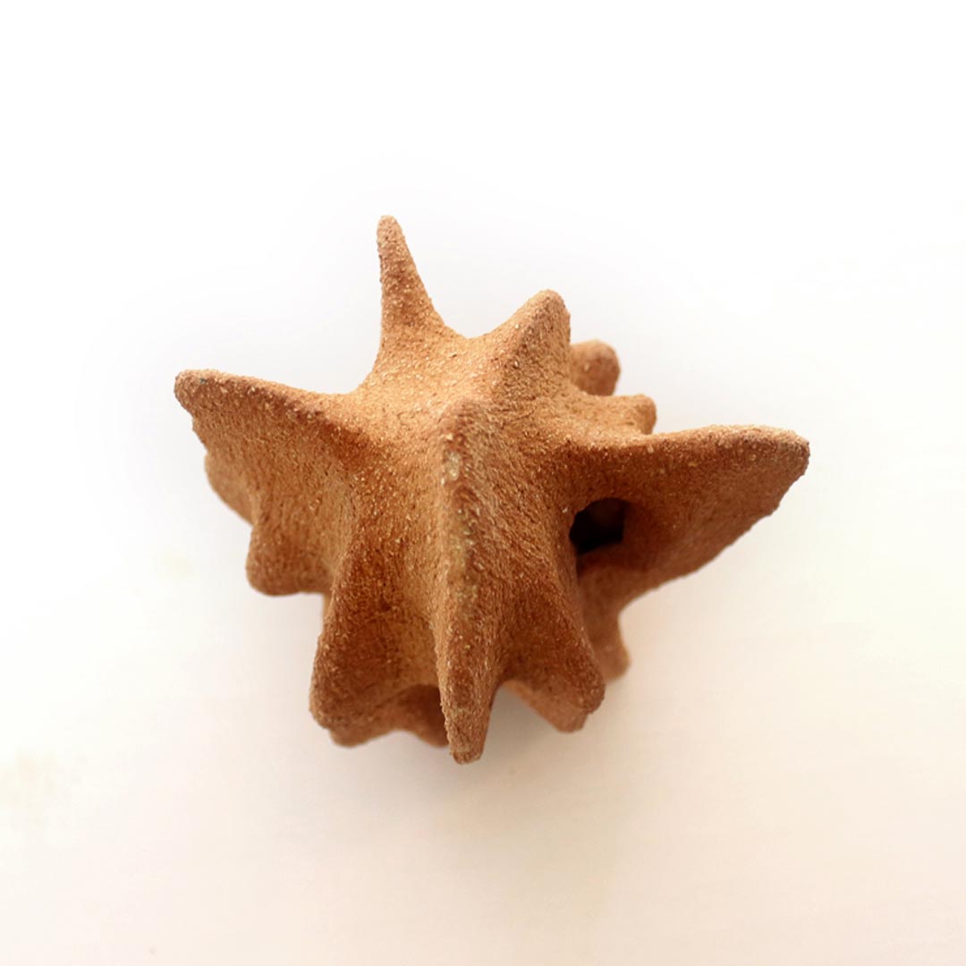 Elaborada en gres porcelánico con chamota roja, que no es otra cosa que pequeños fragmentos cerámicos incorporados a la arcilla, le confiere a la pieza una superficie rugosa y orgánica, que evoca la tierra de un gran hormiguero la dota de un carácter robusto.